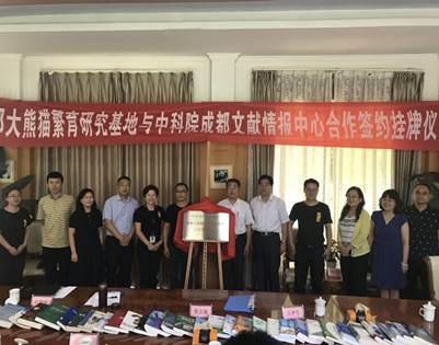 2017年6月7日,中科院成都文献情报中心与成都大熊猫繁育研究基地在成都大熊猫繁育研究基地举行科技信息服务合作座谈会、合作协议签约暨共建信息服务中心揭牌仪式。中科院成都分院党组书记王学定及院长助理江晓波、科技合作处处长董微,中科院成都文献情报中心主任张志强及副主任杨志萍和信息服务部、网络与信息技术部、科技处等部门负责人等一行十人,成都大熊猫繁育研究基地副主任王革生、基地研究中心主任侯蓉等以及来自基地遗传团队、科普教育部、动管部、疫病防控部和研究人员共30多人参加签约及揭牌仪式。成都大熊猫繁育研究基地综秘部部长蒲安宁主持仪式。