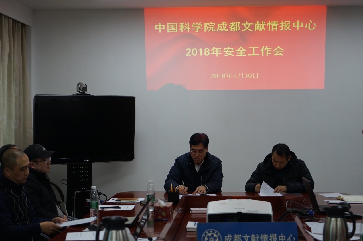 1月30日,成都文献情报中心召开2018年安全工作会议,中心领导班子成员、各部门正职负责人、安全主管、安全员参加会议。党委书记邓勇主持会议。