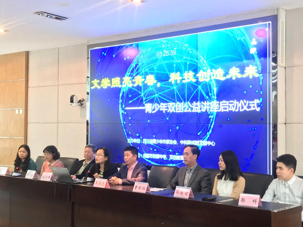 为了加强科学文化传播和青少年文创基地建设,挖掘文学新人,培养青少年科学素质,四川省青少年作家协会与中科院成都文献情报中心共同策划组织了“文学照亮青春 科技创造未来”双创系列公益讲座活动,4月3日,启动仪式在成都树德中学举行,并带来了首场讲座。